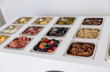 Let us take care of the spread! With this option, our charcuterie cart arrives fully stocked with an array of delicious, thoughtfully curated selections. From cheeses and meats to fresh fruits, nuts, and artisanal treats, every item is arranged to impress. It’s a hassle-free way to offer your guests a stunning and flavorful experience, making their own little gazing board to snack on